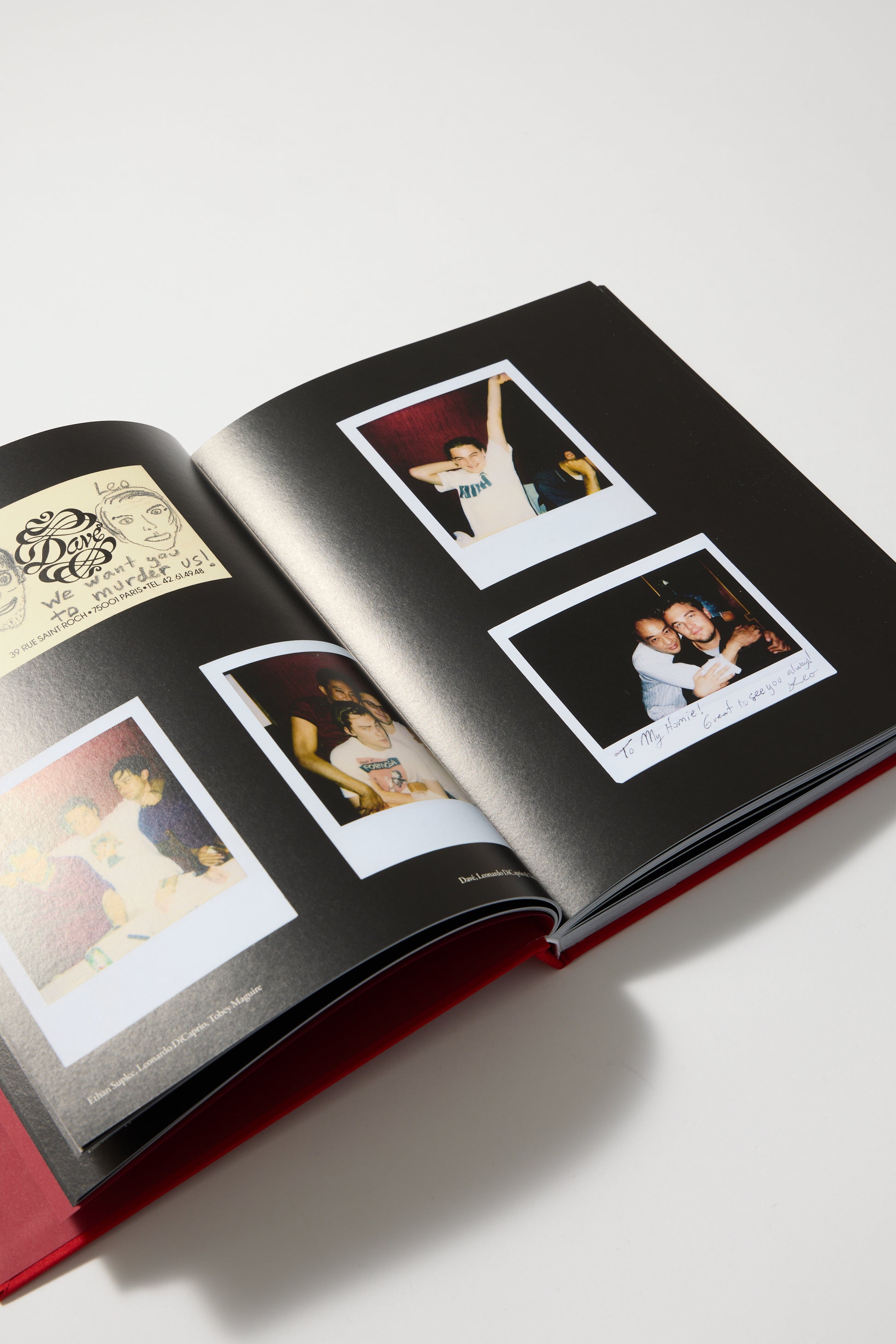 Hay tres textos. Sofia Coppola ha escrito el prólogo. Su padre es amigo de toda la vida de Davé y Sofia frecuentó el restaurante desde niña. El célebre escritor francés Jean-Jacques Schuhl aporta un epílogo de deleite literario apropiado, un extracto de su novela de 2010 Entrée des Fantômes, traducido por primera vez al inglés por Charles Morin. Y hay una entrevista con el propio Davé en la que cuenta historias que, en algunos casos, revelan más sobre las fotografías que las propias Polaroids. Además de las Polaroids, hay obras de arte únicas: tokens de afecto regalados a Davé por sus amigos artistas, garabateados en menús, tarjetas de visita o incluso directamente en las mesas. Dibujos inéditos de Jean-Paul Gaultier, Keith Haring, George Condo y Martin Kippenberger, una nota de Henri Cartier-Bresson, postales de Helmut Newton y Guy Bourdin. A NIGHT AT DAVÉ es una historia contada con gran viveza.